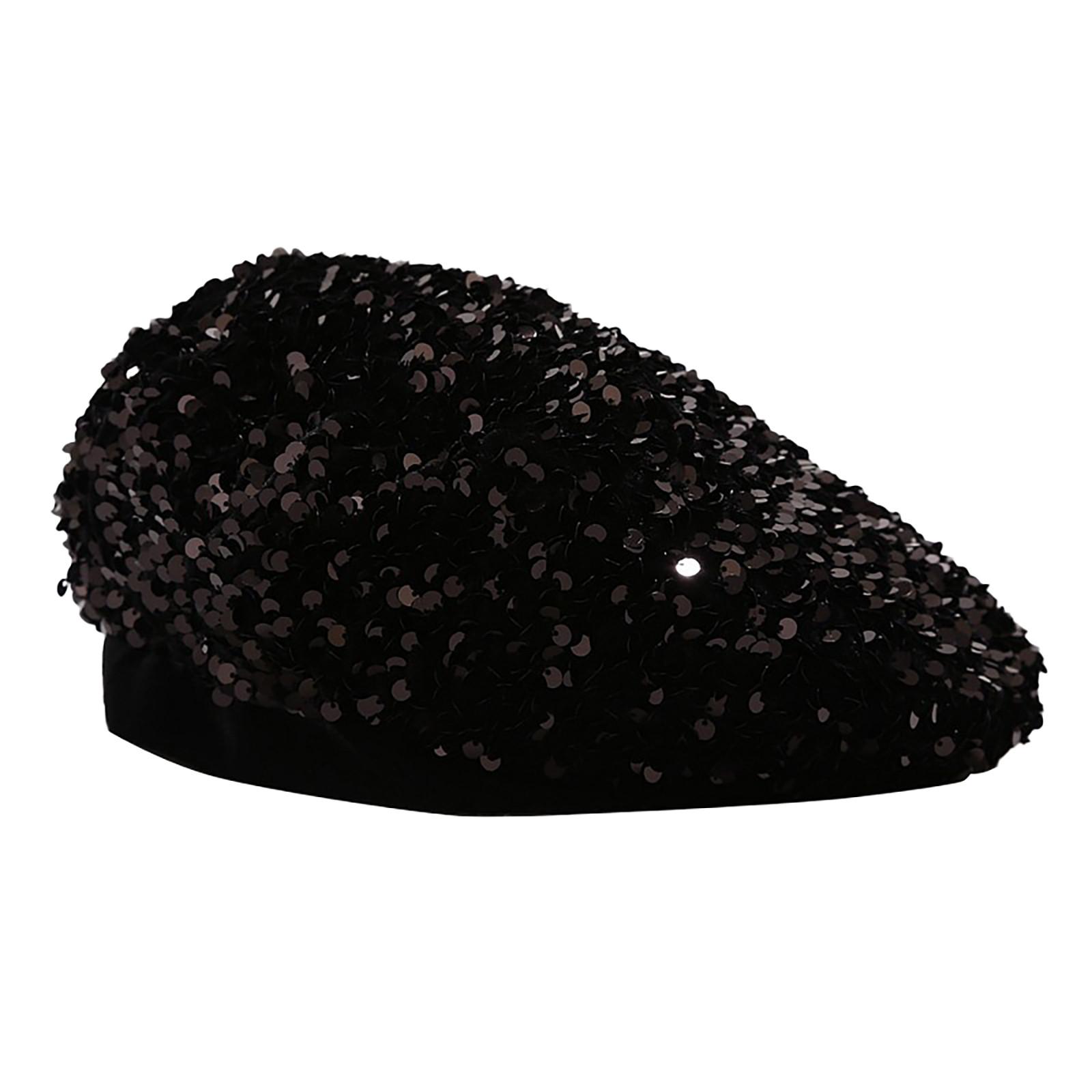 (SU)Осенне-зимний берет с блестками, теплая теплая уличная женская шляпа художника для взрослых One size чёрный