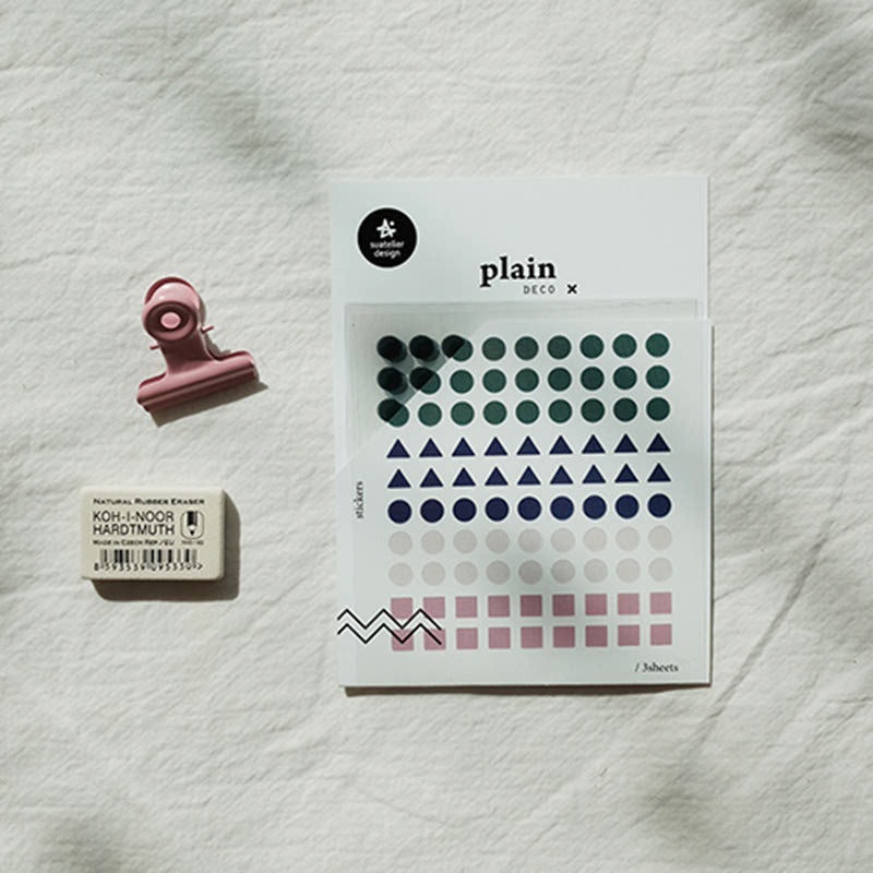 Sticker seri memiliki warna yang lebih kalem dan bentuk yang beragam. Lebih efektif dan menyenangkan dengan versi 01, 02, 03 polos yang terbuat dari bahan PET yang sama.