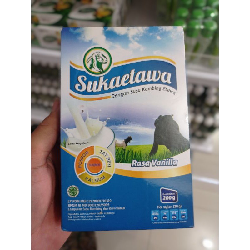 Sukaetawa merupakan minuman yang dihasilkan dari Kambing etawa pilihan yang diformulasikan untuk menghasilkan produk yang berkualitas dan membantu untuk memenuhi kebutuhan nutrisi serta mempunyai rasa yang nikmat.