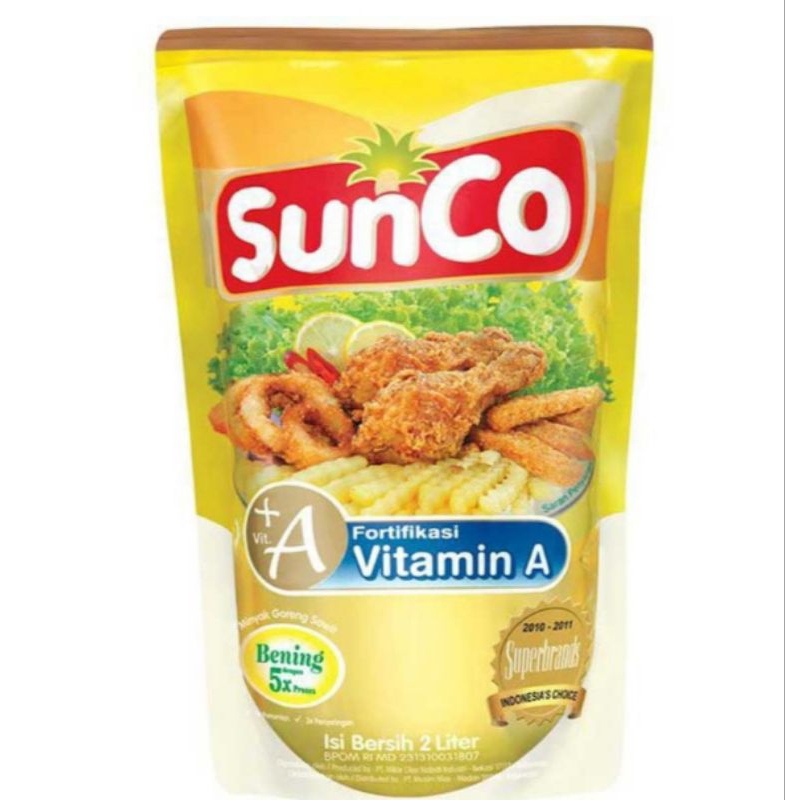 SunCo Minyak Goreng 2 L adalah minyak goreng masak yang diproduksi dari buah kelapa sawit segar pilihan dan difortifikasi dengan vitamin A. Diproses dengan teknologi mutakhir melalui 5 tahap pemrosesan, yakni 3 kali proses pemurnian dan 2 kali proses penyaringan sehingga menghasilkan minyak goreng yang baik dan berkualitas. Adapun ciri minyak goreng yang baik adalah warna minyak yang bening, tidak mudah beku, dan karakternya seperti air. Warna Sunco yang bening dan tidak cepat hitam atau teroksidasi dapat meminimalkan risiko kanker. Berbeda dengan minyak goreng sawit lain, Sunco tidak mudah beku karena mengandung asam lemak jenuh terendah yang dapat meminimalkan peningkatan kolesterol jahat. Tak hanya itu karakter Sunco yang seperti air, tidak lekat, dan tidak menyerap berlebih di makanan, membuat kegiatan makan lebih nyaman tanpa rasa gatal di tenggorokan.