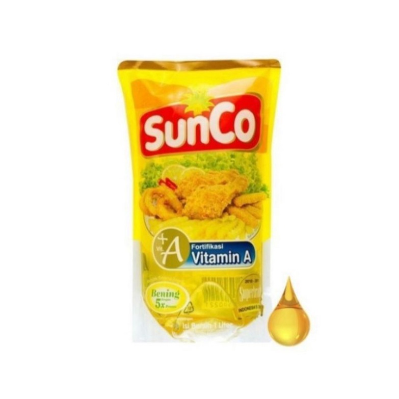 Sunco minyak goreng 1 lt minyak goreng sawit 2 kali penyaringan sangat jernih yang mengandung vitamin A .