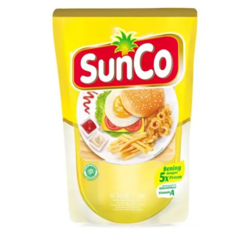 Deskripsi. Sunco Minyak Goreng merupakan minyak goreng yang menggunakan kelapa sawit pilihan dan diolah melalui 2 sampai 3 kali proses penyaringan dengan teknologi canggih. Proses ini membuat minyak Sunco tetap higienis.
