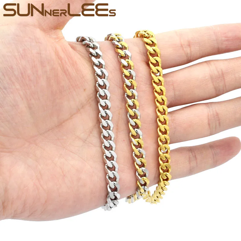 SUNNERLEES модные ювелирные изделия браслет из нержавеющей стали 6 мм панцирная кубинская цепь серебряный цвет позолоченный для мужчин женщин ...