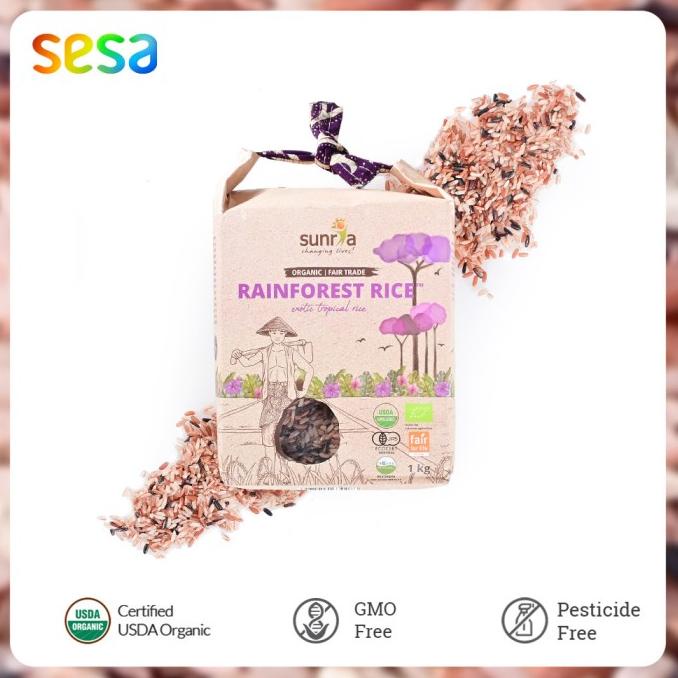 Rainforest Rice Sunria adalah campuran beras merah, pink dan hitam yang mempunyai kadar serat tinggi dan memiliki antioksidan yang bersifat anti-aging