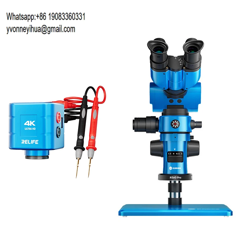 SUNSHINE R360 Pro Stereo Microscope Adjustable 0.7-5.8X Zoom 4K HD Dual Screen For Phone Repair LED Ring Light Magnetic Base