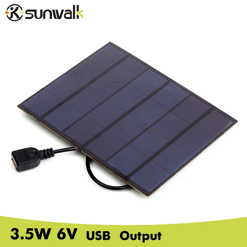 SUNWALK 3.5W 6V Mono Solar Panel with USB Output Mini Solar System for DIY Battery Charger / Cell Phone Solar Charger
