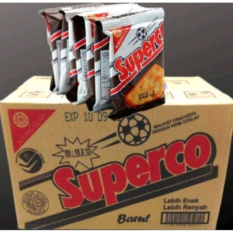 Superco kong guan merupakan malkist dengan krim rasa coklat. Berat bersih 22 gram.