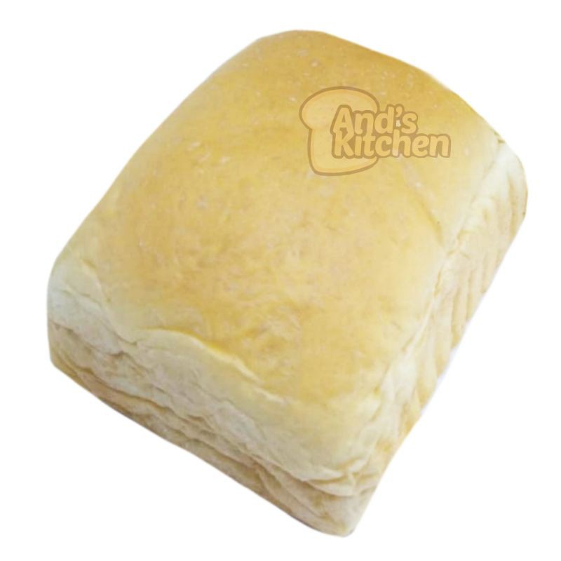 roti bentuk kuro/rokupang warna putih. tekstur lembut, empuk dan enak.