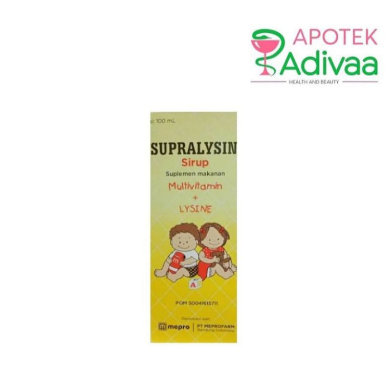 SUPRALYSIN merupakan kombinasi multivitamin dan Lysine, yang terdiri dari Vitamin B-complex, Vitamin A, Vitamin D, Vitamin C dan Lysine.