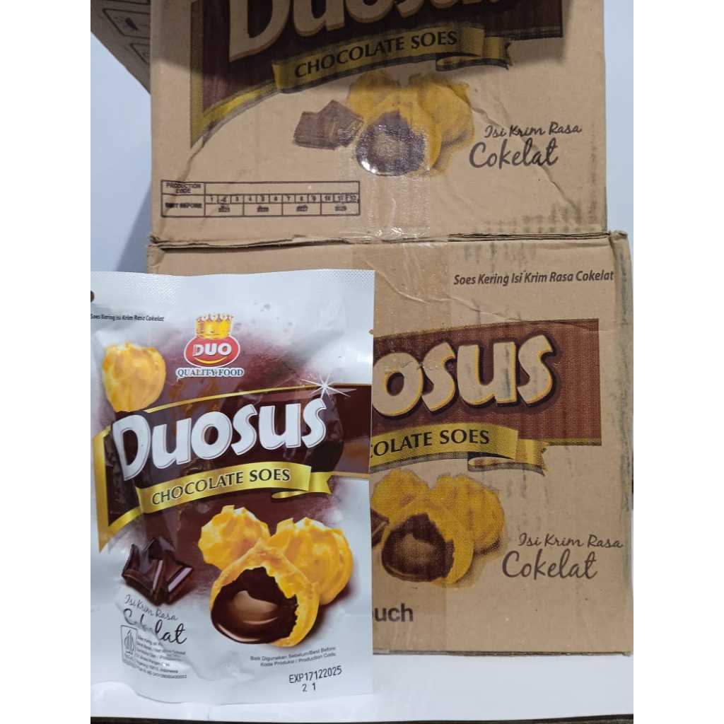 Duosus Soes kering merupakan camilan soes renyah yang terbuat dari bahan baku berkualitas tinggi yang di olah dengan proses higienis serta menggunakan teknologi modern. Sehingga menghasilkan cokelat lumer yang lezat memanjakan lidah dan membuat rasa semakin mantap. Sangat cocok buat cemilan dirumah, di perjalanan, kumpul-kumpul dengan teman dan aktivitas lainnya.