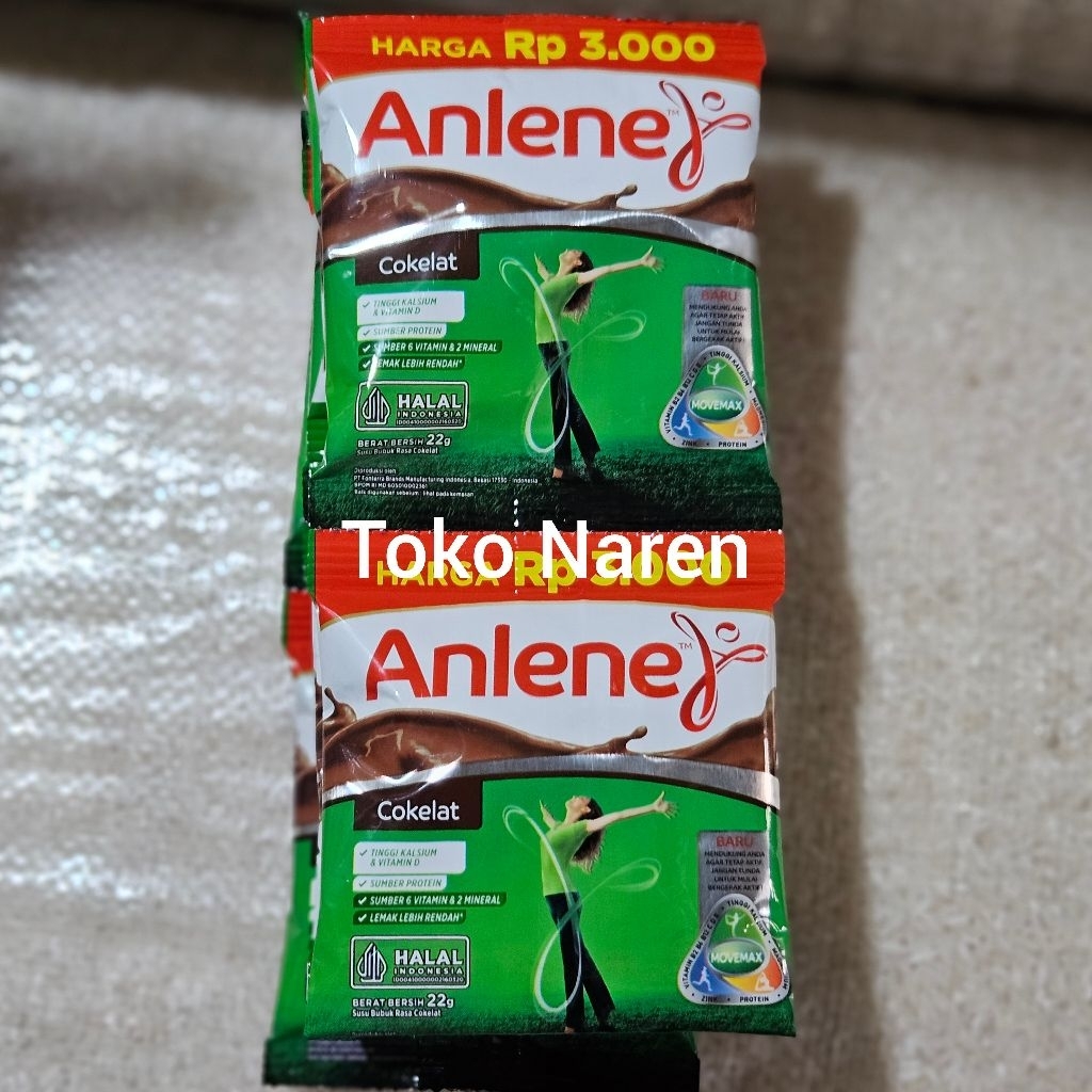 Susu Anlene tersedia dalam kemasan renceng (isi 10 sachet), dengan varian rasa vanila dan cokelat. Susu Anlene dikenal sebagai susu yang baik untuk kesehatan tulang dan sendi, terutama bagi orang dewasa yang aktif.