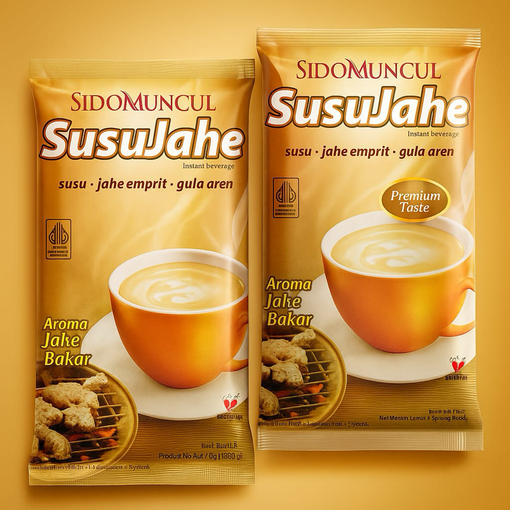 Susu Jahe Sido Muncul, minuman serbuk mengandung susu dan ekstrak jahe dengan rasa yang nikmat, hangat dan mantap.