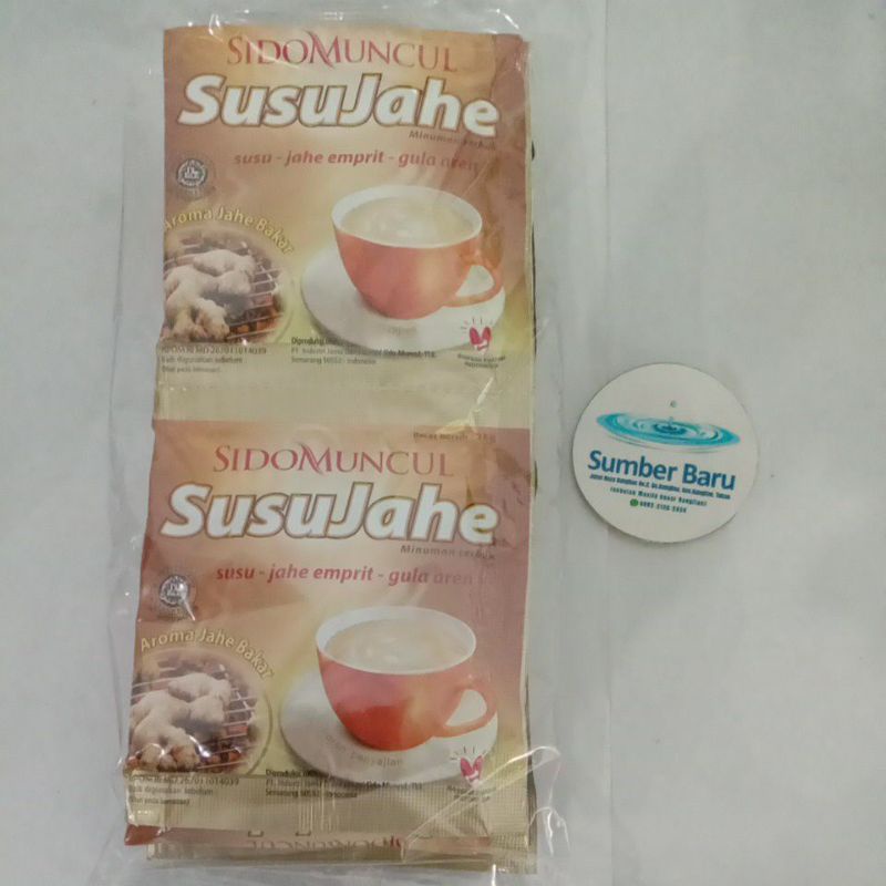 Sidomuncul Susu Jahe Minuman serbuk dengan paduan susu, jahe emprit, gula aren serta ekstrak jahe bakar, rasanya nikmat, hangat dsn mantap.
