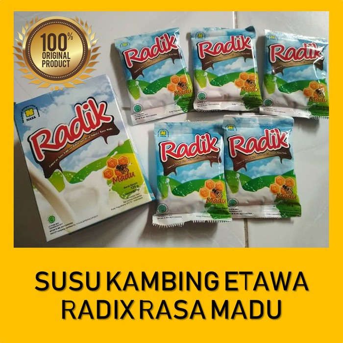 Susu Radix Madu merupakan berupa susu kambing bubuk plus 7 Herba Radix. Susu Radix Madu diproses secara organik tanpa bahan pengawet, tanpa pemanis buatan dengan pelengkap madu alami.