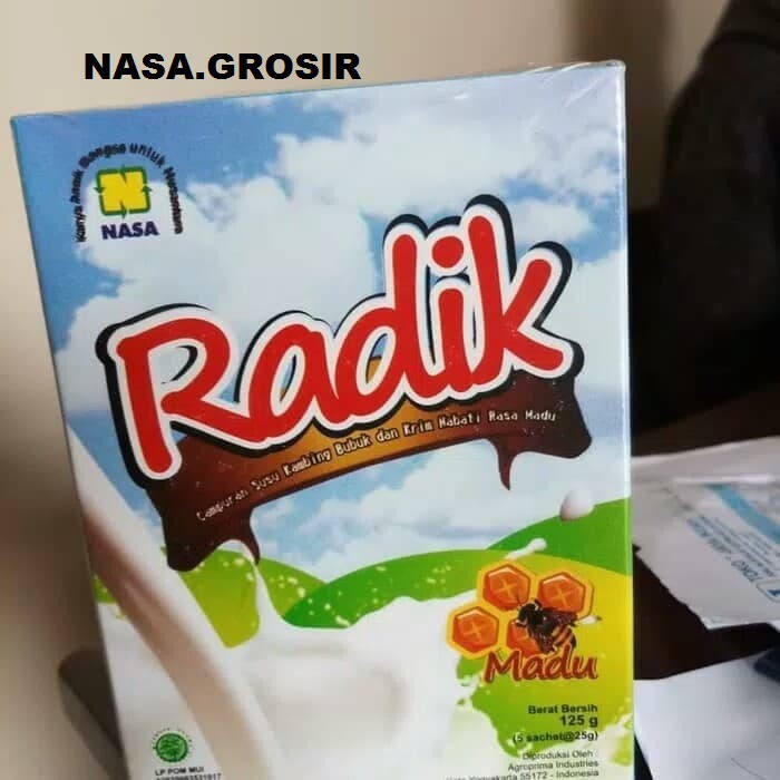 RADIK, Campuran Susu Kambing Bubuk dan Krim Nabati dengan 2 pilihan rasa : Madu dan Cokelat