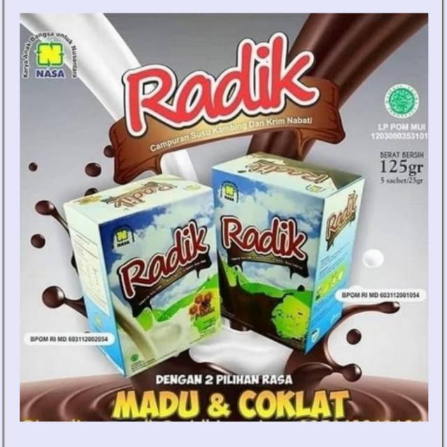 Susu RADIK Madu (5 Sachet) merupakan salah satu produk minuman kesehatan dari NASA berupa produk susu kambing bubuk plus krim nabati. Susu Radik ini diproses secara organik tanpa bahan pengawet, tanpa pemanis buatan dengan pelengkap madu alami.