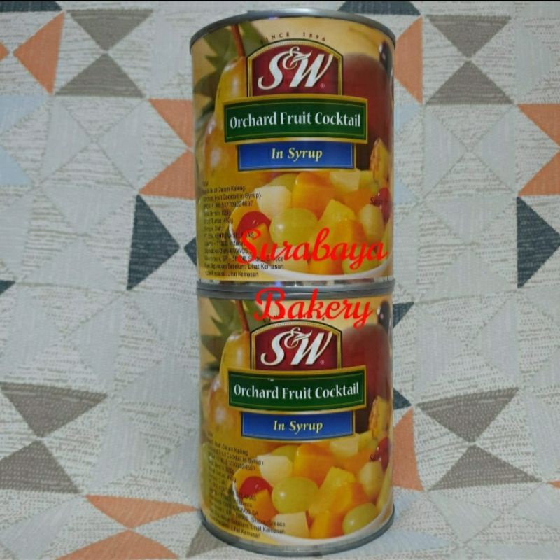 merupakan varian premium Fruit cocktail dari Brand SW. isinya kurang lebih Buah peach, buah pir, buah anggur, buah nanas, buah ceri. cocok di gunakan sebagai tambahan untuk es Buah, es pudding, dll. sesuai selera anda.