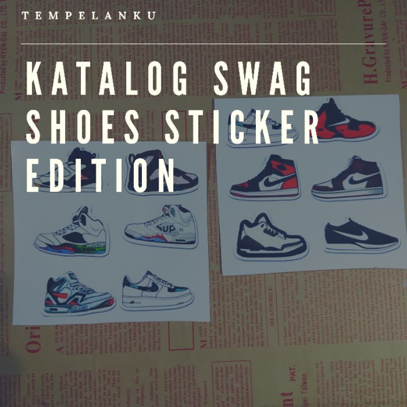 sini sini yuk kumpull, ada inovasi yang terbaru nih dari kita keluarin sticker lembaran guys, dan ukurannya lebih besarr lohhh, cocok untuk di bagi bagi ke saudaraa, biar makin seruu kalian bisa gunting sendirii lohh, ada sticker tema Swag shoes niii, cocok banget nii ukurannya buat di tempel di koper atau pun helm kamuu biar makin swag eaaa wkwk