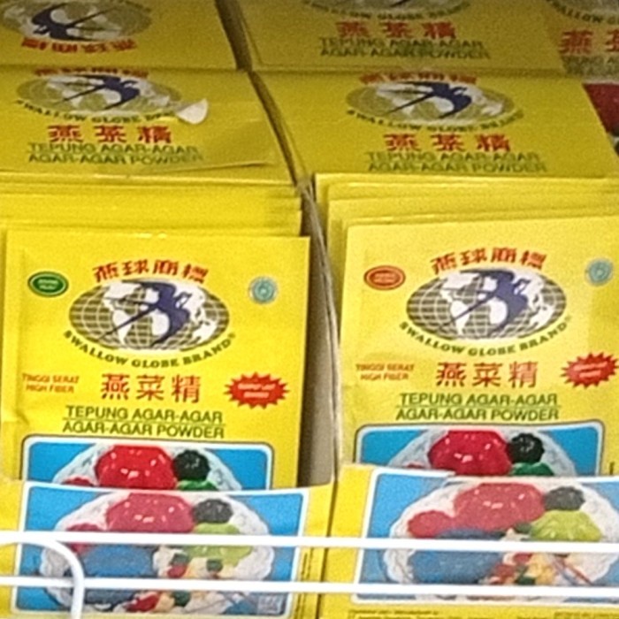 Tepung agar-agar swallow globe brand berserat tinggi yang diperoleh dari sari rumput laut asli.
