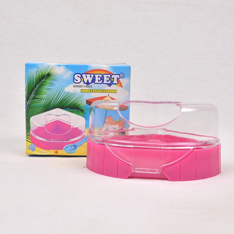 Sweet Bathroom untuk hamster mandi/tidur Tempat dapat diisi dengan pasir wangi agar hamster dapat membersihkan bulu nya.Di sediakan sekop untuk membersihan pasir yang terkena kotoran hamster.Ukuran: 13 x 6.5 x 9 cm