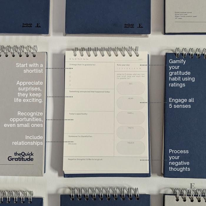 The Quick Gratitude is a compact, gratitude journal notepad that helps you maintain a quick habit of daily gratitude. Start your gratitude journey and look at life through another lens.