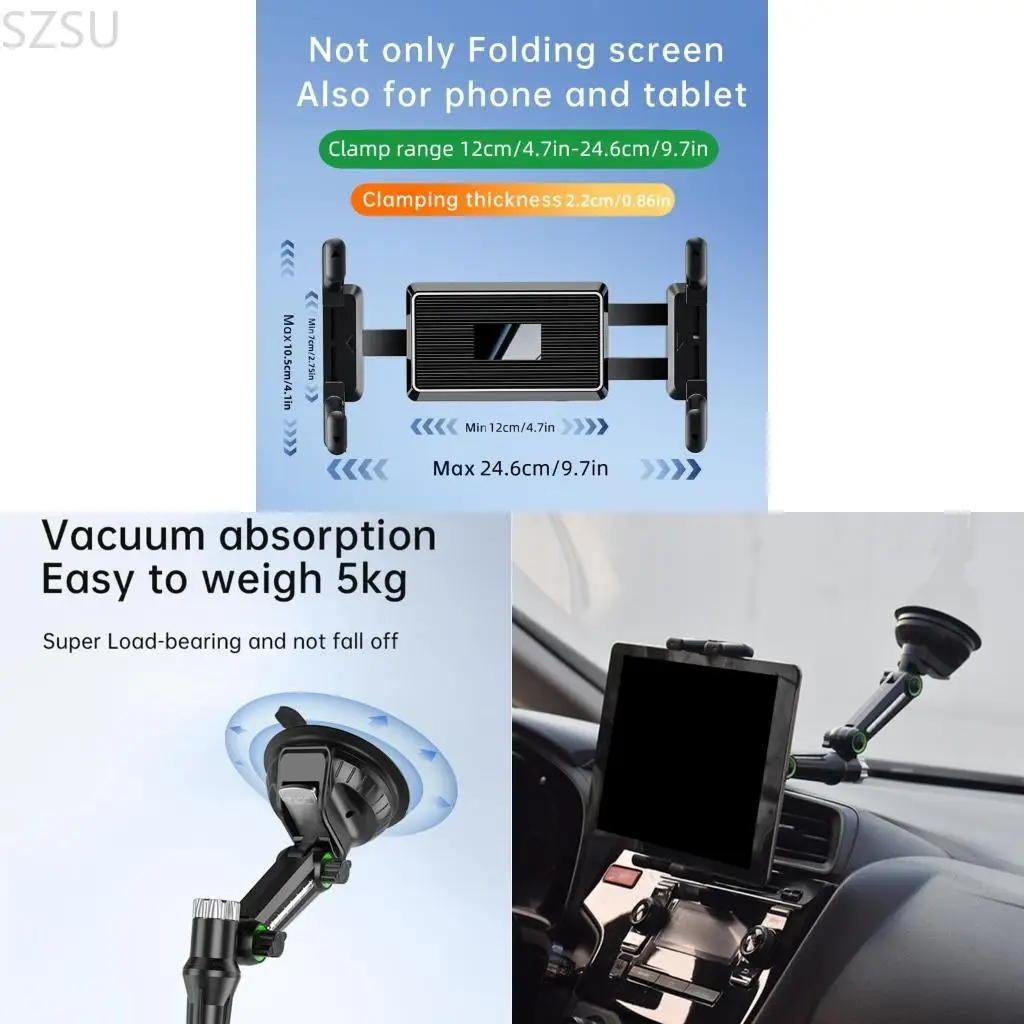 SZSU Car Mount Tablet Holder Stand with Extendable Arm and 360 Rotation Phone Stand