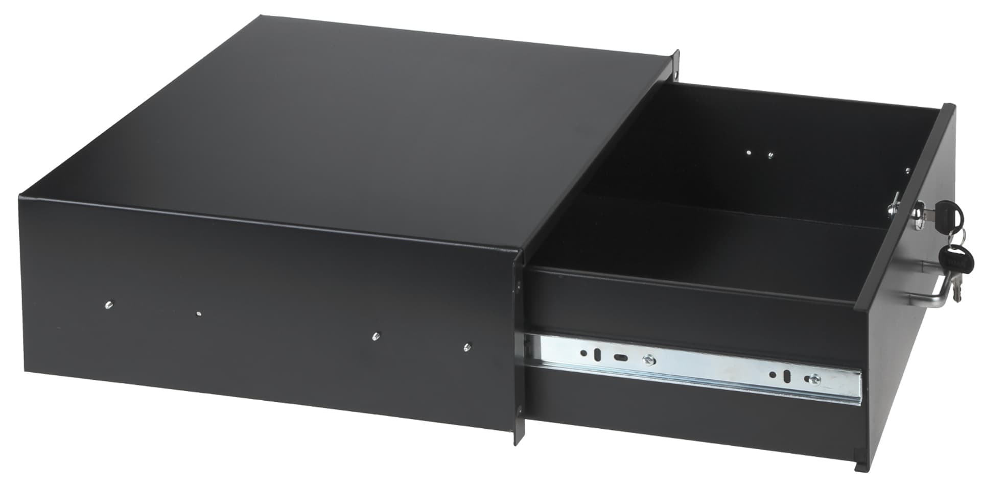 Zamykana na klucz szuflada RAS-R3 przeznaczona do montażu w szafach RACK 19"Szufladę można z powodzeniem wykorzystać do przechowywania dokumentacji, zapasowych przewodów, lub drobnych narzędzi