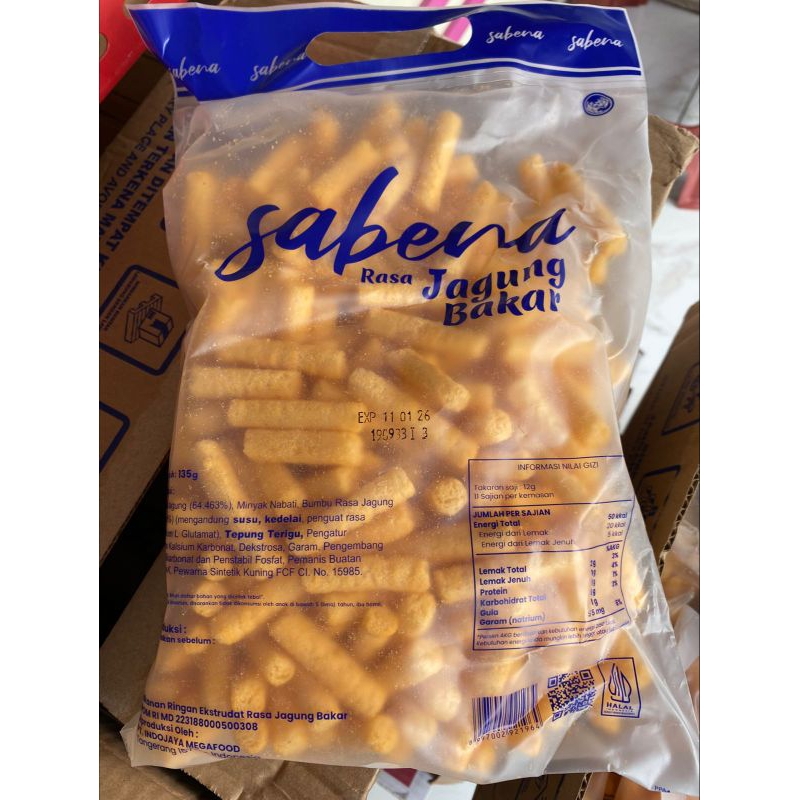 bumbu rasa balado,sapi panggang dan jagung bakar(9,61%),mengandung kedelai,penguat rasa mononatrium L,glutamat,tepung terigu,pengatur keasaman kalsium karbonat,garam,pengembang natrium bikarbonat,dan penstabil fosfat,pemanis buatan asesulfam-k,pewarna sintetik kuning fcf ci no.15985