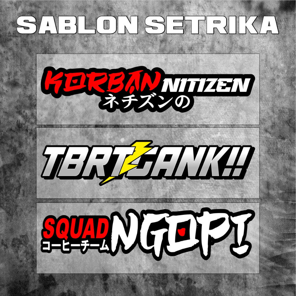 SABLON Setrika Sablon DTF SIAP PRESS ! spesifikasi produk : - Harga diatas merupakan harga satuan - TERSEDIA 2 UKURAN > BESAR : Lebar 25 cm X tinggi menyesuaikan ( ukuran ini hanya rata2 ) > KECIL : Lebar 12 cm X tinggi menyesuaikan ( ukuran ini hanya rata2 ) Di cetak menggunakan mesin DTF modern sehingga gambar lebih detail, tajam dan tidak pudar/blur. Menggunakan Tinta Import yang berkualitas sehingga tidak mudah luntur dan tahan lama. Tekstur sablon lentur serta tidak mudah retak, bahkan jika di setrika atau di sikat saat mencuci tidak rusak sama sekali. Sablon bisa di aplikasikan di berbagai media seperti; - Kaos - Celana - Jaket - Jas Hujan - Tas - Masker - Topi - Dll (kain katun, canvas, PE, parasut, apapun yang mengunakan bahan dasar kain bisa di tempel) - Kunjungi toko kami untuk melihat lebih banyak desain yg menarik. PRODUK SELALU READY STOCK >> RESELLER WELCOME