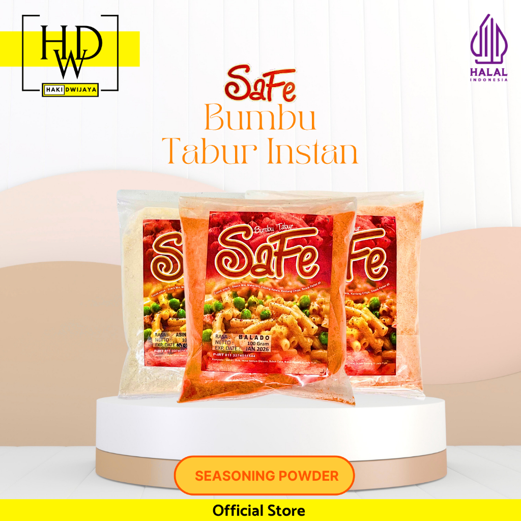 Bumbu Tabur SAFE adalah bumbu instan siap pakai yang cocok untuk berbagai makanan ringan seperti kentang goreng, makaroni, popcorn, sosis, tahu crispy, dan lain-lain. Hadir dalam berbagai varian rasa favorit seperti Keju, Balado, Jagung Manis, BBQ, dan Pedas Manis.