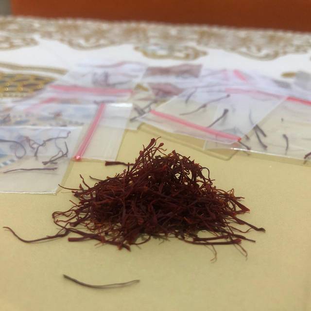 Bunga safron ini di hasilkan dari bunga crocus sativus yang di keringkan