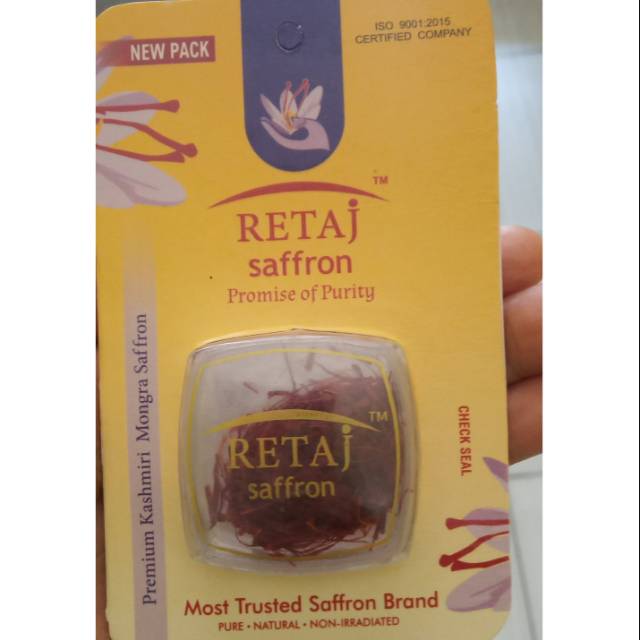 RETAJ KASHMIRI SAFFRON Ada lah saffron yg ditanam di kebun saffron di Gundbal, yg berada di provinsi PAMPORE, KASHMIR yang menghasilkan saffron KASHMIR KUALITAS TERBAIK. Merupakan MONGRA SAFFRON , KUALITAS TERBAIK yang PUTIK Saffron nya memiliki warna merah-gelap, panjang , halus Dan lembut. Sangat disarankan untuk orang yang ingin memulai hidup sehat. Cukup konsumsi 3-4 putik saffron diseduh dengan 1 gelas air