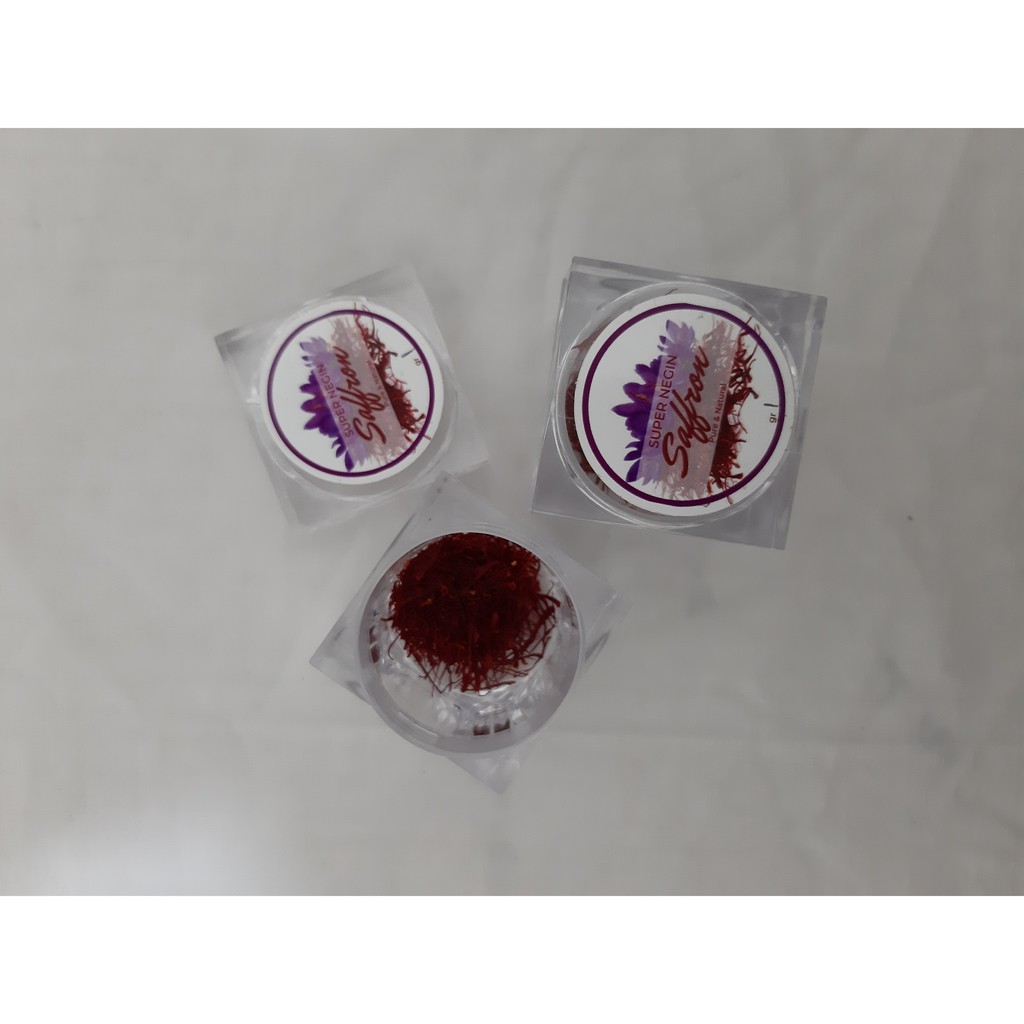 100% Saffron Iran kualitas terbaik (Super Negin). Helai putik (stigma) utuh, lebih panjang dan hanya diambil bagian yang berwarna merah saja tanpa bagian warna kuning. Info lengkap tentang kualitas saffron, lihat di foto ya