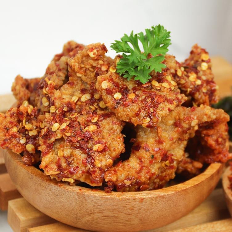 Kulit ayam yang dilumuri terigu, digoreng hingga garing dan renyah ini memiliki rasa gurih yang bikin siapapun pasti ketagihan. Kini tersedia dalam varian rasa pedas.