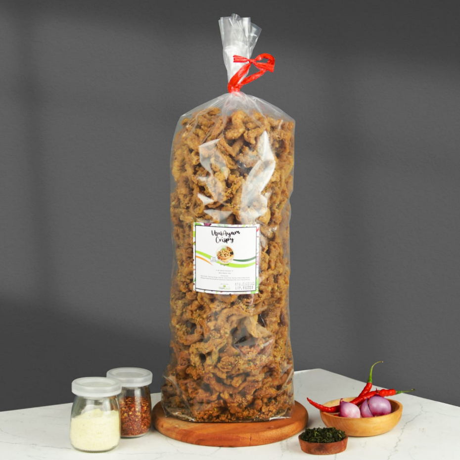 Usus crispy merupakan cemilan yang terbuat dari usus ayam pilihan yang dipadukan dengan terigu dan berbagai bumbu sehingga gurih dan renyah.