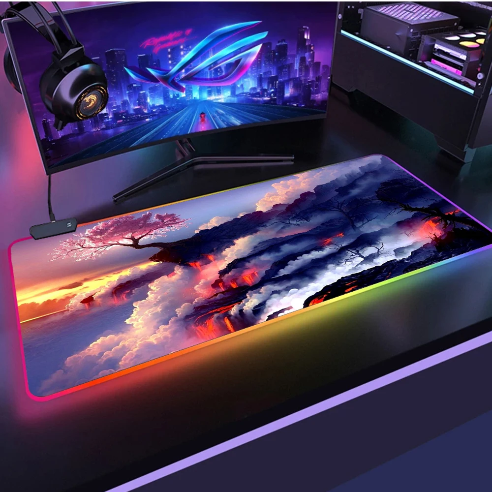 Sakura Mouse Pad Gamer Large Overlock Soft Sakura Gaming Mouse Pad RGB LED Volcano Anti-Slip Rubber Computer Desk Pad Mouse Pad