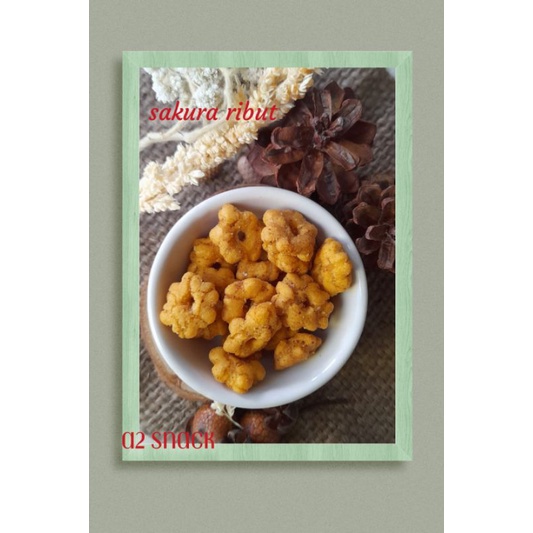 Camilan berbentuk bunga sakura yang di olah dengan bumbu pilihan Sehingga menjadikan snack ini gurih dan di tabur dengan bumbu tabur pilihan mengupayakan rasa manis gurih dan bikin nagih.