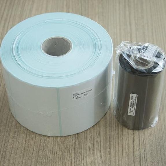 Paket Label Sticker Semi Coated Ukuran 4 inch X 3 inch + Ribbon Wax Premium TR-3