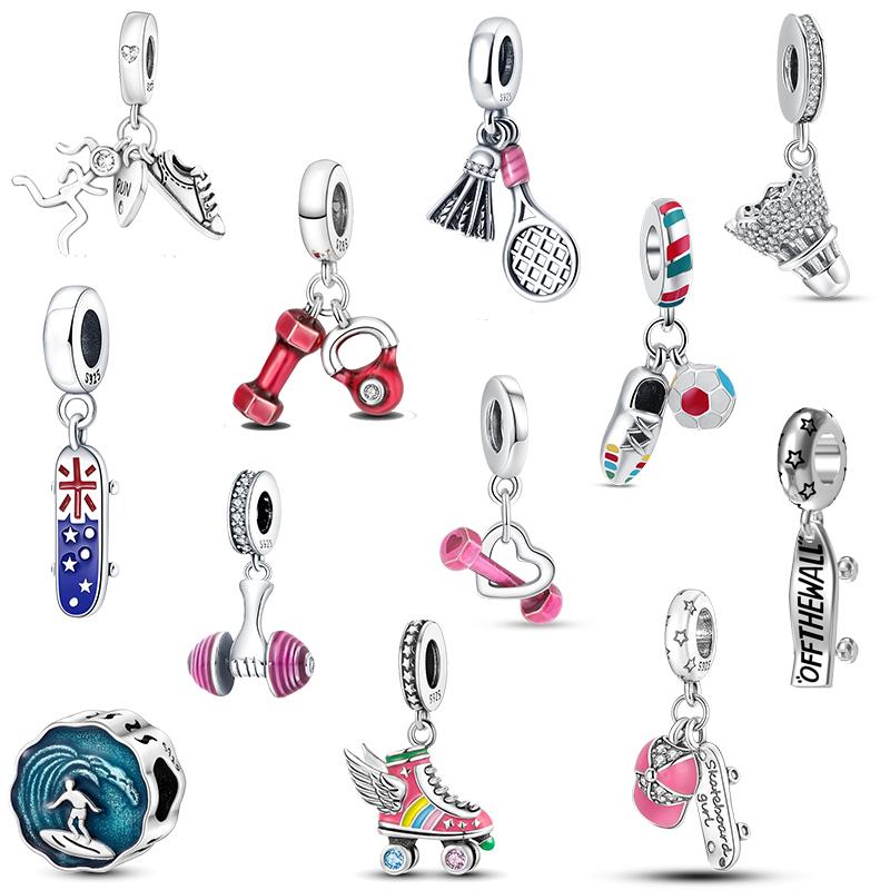 Sale 925 Sterling Silver Sports Series Badminton Skate Dumbbell Dangle Charm Fit Original Bracelet DIY Beads Jewelry