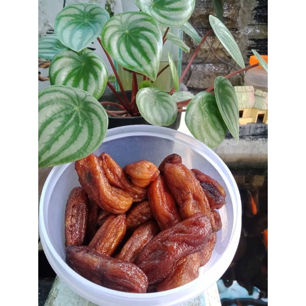 dibuat dari pisang raja siem, dan dijemur dibawah sinar matahari lgsung. rasa yg manis dan legit membuat terus ingin memakannya.
