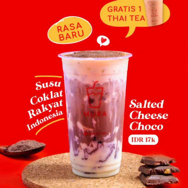 Minuman rasa cokelat dengan topping salted cheese