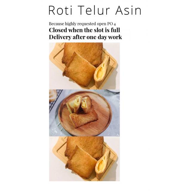 Roti isi telur asin kaya akan protein dan nikmat. Selain itu roti ini dibuat fresh. Pesan langsung dibikin fresh. Selamat mencoba.