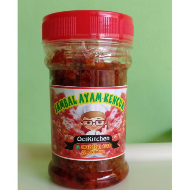 sambal ayam kencur homemade.. dengan cita rasa khas kencur dan cabe rawit merah. didalam terdapat potongan ayam.