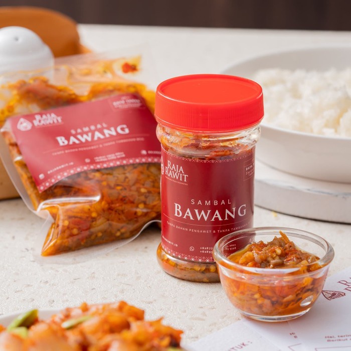 Sambal bawang Raja Rawit memiliki cita rasa gurih pedas dan terasa bawang merah dan terasi.