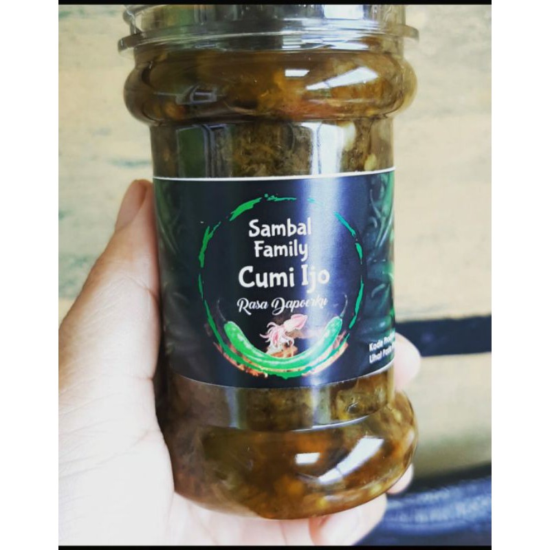 sambal cumi ijo fresh dengan bahan2 yg pilihan tanpa penambahan pewarna hijau atau bahan kimia lainnya,aroma cabe hijau yg khas membuat selera makan semakin nikmat,sambal tidak menggunakan pengawet,No Msg,dan isian cumi tidak pelit.