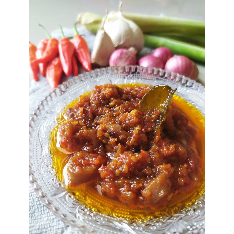 Olahan Sambal dengan Cabe segar dan Cumi Asin tanpa menggunakan bahan pengawet apapun (Menggunakan minyak agar lebih tahan lama)