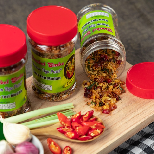 Sambal kering berbahan dasar bawang dan ikan teri. Nikmat disantap sebagai pelengkap makanan, penambah selera makan.