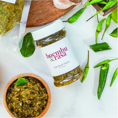 Sambal Hijau Boembu&Rasa dibuat dari bahan-bahan pilihan terbaik dan tanpa bahan pengawet, dimasak menggunakan resep keluarga yang sudah terbukti kelezatannya dan dikemas dalam desain baru.