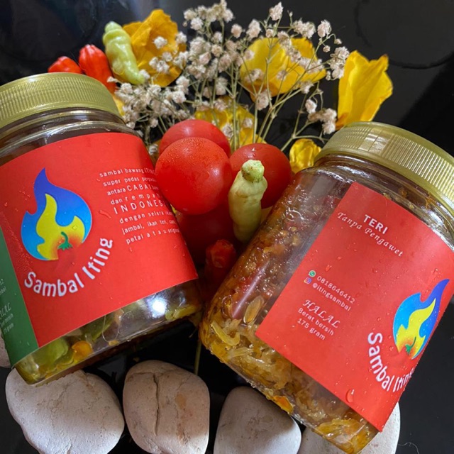 Sambal bawang iting super pedas perpaduan antara cabai bawang dan rempah asli Indonesia dengan selera ikan jambal, teri, cumi, petai, kecombrang atau original