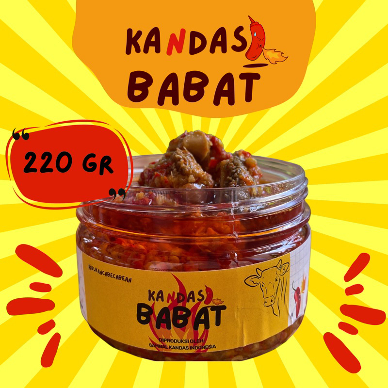 Sambal Kandas BABAT dengan daging Babat pilihan yang rasanya nikmat. Sambal Kandas merupakan produk olahan homemade dengan cita rasa yang begitu maknyus, kombinasi antara bumbu dan rempah yang sangat ciamik.